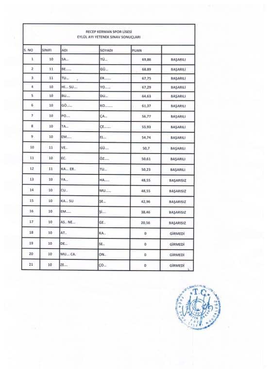 RECEP KERMAN SPOR LİSESİ YETENEK SINAVINDA BAŞARILI OLAN ÖĞRENCİLERE İLİŞKİN NAKİL İŞLEMLERİ,